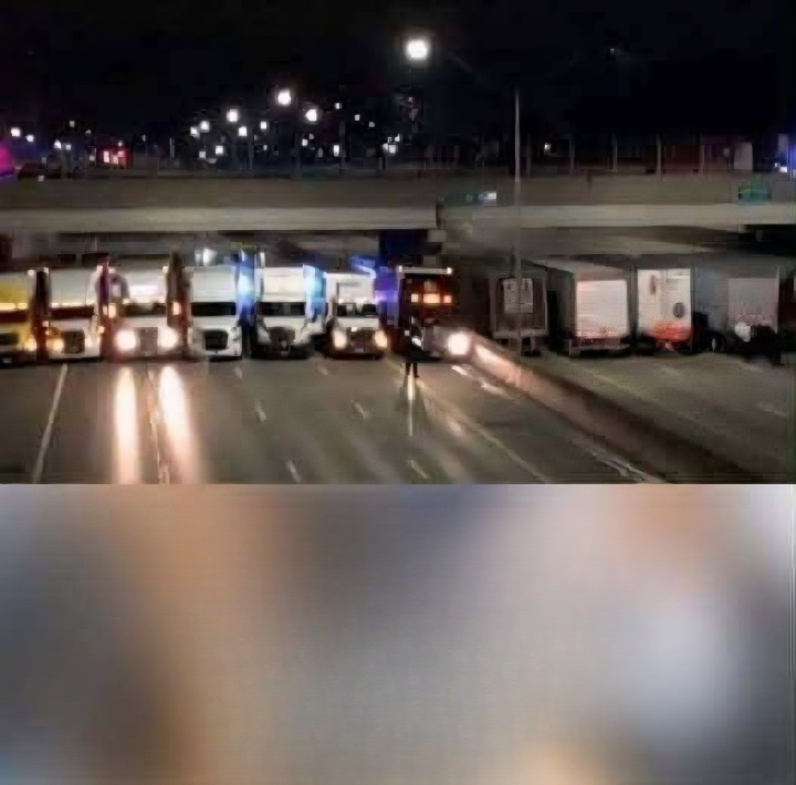 People who were driving along this road got stuck in a traffic jam, but when they learned the reason why 13 trailer trucks were placed in line and not moving an inch blocking the road, they knew the waiting was worth it.